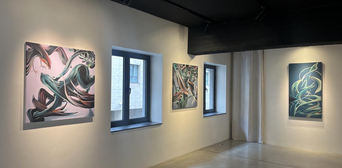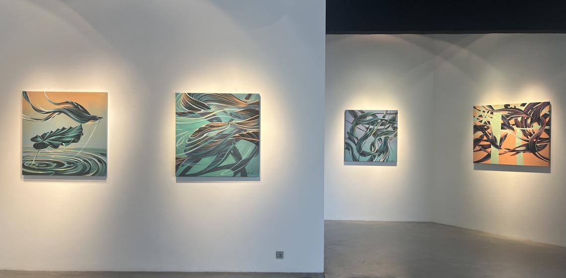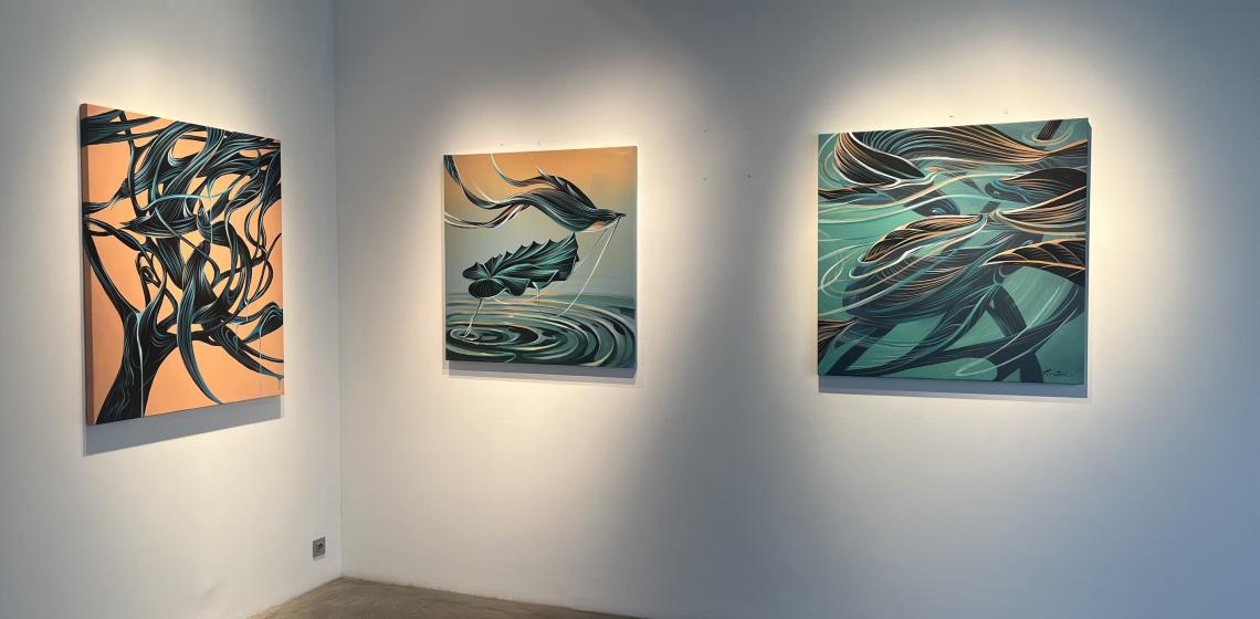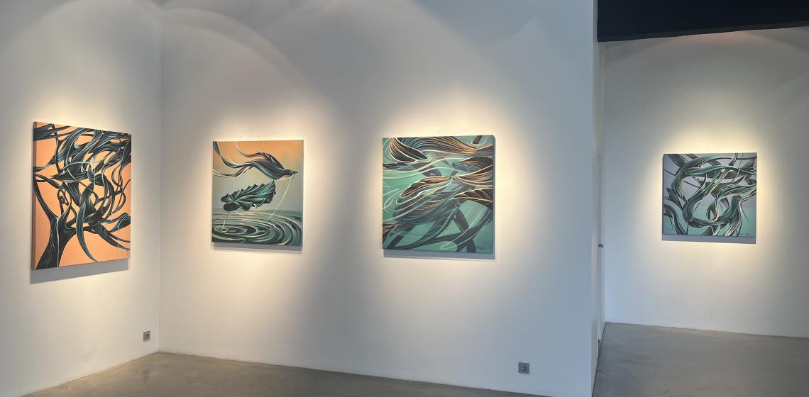 Intitulée La danse des éléments, cette exposition dévoile un ensemble de toiles inédites où se mêlent animaux, eau et terre dans un tourbillon de formes et de mouvements.